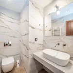 Cet établissement Classic Villa comprend une salle de bains avec une toilette séparée et une douche. Des draps de bain sont fournis pour le confort des clients.